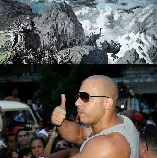 Vin Diesel long ago announced his intention to make his directorial debut and star as Hannibal the Conqueror, the Carthaginian general who crossed the Alps with elephants to menace Rome, working from a script by Oscar-winner David Franzoni (Gladiator, King Arthur) based on the novel Hannibal by Ross Leckie. In April 2014, Vin announced that the project was back in pre-production, and credited his friend and co-star the late Paul Walker for inspiring him to get the project back on track. “He would always say, ‘You need to do Hannibal. It will be your life's work.’ Vin also indicated his intention to expand the project into a trilogy. “We must go further back in time, to grasp the magnitude and relevance of this underserved historic character. The first film in this trilogy will do just that, by introducing us to an even more obscured yet extremely pivotal character, Hannibal’s father.” Holy Melkart, does Vin intend to film Flaubert’s astonishing Salammbo? If you’ve got an update, please let Steven know! (Victor Mature played the role in the 1960 Hannibal, and Alexander Siddig starred in a 2006 BBC telemovie included as an extra in the DVD set Warriors.)